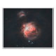 Una vista impresionante de la Nebulosa de Orión (M42), donde nubes de gas y polvo luminosas se arremolinan para crear nuevas estrellas en uno de los viveros estelares más famosos del universo. Esta imagen captura los vibrantes rojos y blancos suaves de la materia interestelar, invitando al espectador a una escena de belleza cósmica, misterio y escala infinita.