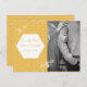 ¡Felicitaciones por tu compromiso! ¡Ahora es el momento de compartir tus fantásticas noticias con tu más cercano y querido con este lindo personalizado de patrones de hexágono amarillo y blanco con la temática de la abeja, ahorra la fecha! Personalizar con tu foto y detalles favoritos y estás bien. Esta tarjeta es parte de una colección de bodas curados y coordinados llamada "Oh Boda Amarillo Miel" en la tienda Celebrations Studio, donde hay una gama de artículos de papelería, decoración y productos de correo boda a juego.