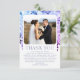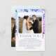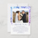 La tarjeta de foto de agradecimiento de boda acuarela floral de glicina presenta su foto favorita con el texto "Gracias" en tipografía de escritura morada moderna acentuada con flores de glicina de acuarela azul, morado y lavanda. En el reverso, agregue una foto adicional con su mensaje personalizado. Parte de una colección diseñada por Evco Studio www.zazzle.com/store/evcostudio