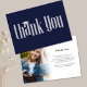 Este diseño presenta a un graduado, foto, tarjeta de agradecimiento, con un estilo moderno, ideal para escuela secundaria o universidad, simple, minimalista, azul marino y blanco, con un mensaje personalizado, clase de 2024