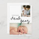 Anunciar el nacimiento de su bebé y desear a todos un Feliz Año Nuevo con esta tarjeta plana con anuncio de nacimiento de bebé. Personalice y personalizar este diseño con su foto familiar y la fotografía del bebé. Edite las estadísticas de nacimiento y saludo especial con las suyas. Tipografía de escritura moderna con palabras reflexivas en una plantilla fácil de usar.