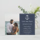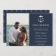 Establece el tono para tu celebración con esta Foto de Monograma Náutico Azul Marino para Guardar la Fecha, perfecta para un tema de boda náutico atemporal y bodas costeras románticas. Con un clásico ancla náutica, monogramas de novia y novio, e iniciales personalizadas, este diseño enmarca hermosamente tu foto favorita para un elegante ambiente costero. Con texto editable, la personalización es sin esfuerzo: agrega tu foto, personaliza los monogramas y detalles, y visualiza tu diseño personalizado antes de comprar para asegurarte de que todo se vea perfecto. Ideal como una tarjeta de guardar la fecha que combina el encanto de la foto con el estilo náutico, este diseño crea una primera impresión memorable para el anuncio de tu boda.