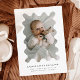 Tarjeta de anuncio de natalidad caprichosa y dulce con foto dibujada a mano de la línea ondulada.