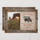 Ilustración de un bisonte con sombrero de Santa con un árbol de Navidad nevado atado a su espalda. El borde y el reverso tienen un diseño geométrico inspirado en la arpillera. Personalice con la foto de su familia.