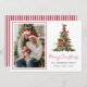 Tarjeta de vacaciones con foto de árbol de Navidad con lazo rojo acuarela