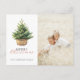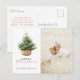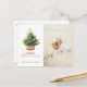 Simple tarjeta postal de felicitación navideña rústica con pino de Navidad en acuarela en una cesta. Combinada con tipografía moderna y de escritura y tu foto favorita.