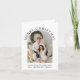 Tarjeta de Navidad elegante doblada con su foto en un marco de arco rodeada de "Feliz Navidad" en tipografía serif clásica y un saludo y el nombre de su familia en tipografía moderna simple. En el interior, personalice su mensaje de temporada para amigos y familiares.