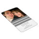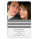 Sencilla y moderna foto de banda triple Guardar el imán de fecha premium con un borde rayado de moda en gris oscuro y una plantilla de foto. Este elegante ahorrador de fechas es perfecto para anunciar a su boda! Fácil de personalizar, añada los detalles de su boda y reemplace la foto por una propia. Haga clic en "Personalizar" para encontrar más opciones de personalización.