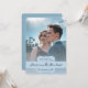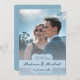 Anuncie su próximo día de boda con una foto simple y elegante, guarde el anuncio de la fecha. El diseño de la invitación muestra la colocación de fotos de la pareja comprometida con un gradiente azul suave y un cartel y texto manuscrito para los nombres de la novia y el novio. Si necesita ayuda para la personalización, póngase en contacto conmigo directamente para asegurarse de que recibe la invitación según sus especificaciones.