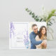 FOTO DE AGRADECIMIENTO | Agregue su foto - Flores de lavanda de acuarela limpias y frescas de primavera con flores azules polvorientas y bayas. El reverso es un color coordinado complementario. Personalice el texto, el estilo de fuente, el color y el tamaño. Diseño creado para BarefootBride™ por © WhimsicalArtwork™ - Esto es parte de un conjunto completo de papelería de boda con papelería de boda, baby shower y otros eventos.