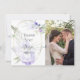FOTO GRACIAS | Agrega tu foto a esta Boda de Anemone Violeta con formas geométricas con tonos de lavanda y matices de marfil - un marco estilo terrario geométrico dorado multifacético adornado con vegetación y tonos de lavanda y ramos florales de alabastro. El reverso es de un color complementario coordinado. Personaliza el texto, estilo de letra, color y tamaño. Esta es parte de una Suite de Papelería de Boda completa con papelería de boda, baby shower y otros eventos.