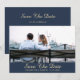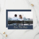 Elegante foto azul y boda dorado ahorran las tarjetas de fecha con una foto de compromiso y un guión de fondo azul. La boda azul y dorada personalizada salva las tarjetas de cita. Personalizable azul y boda dorada salvan las tarjetas de cita. La boda del guión guarda las tarjetas de fecha.