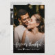 Budget Modern Hand Written Boda Photo "Forever Thankful" script Gracias Cartas. Modern Stylish boda gracias a la plantilla de postal que incluye una foto vertical completa en el frente con el texto superpuesto "Forever Thankful" en una letra de caligrafía escrita a mano en blanco en la imagen. Agrega tu nombre personalizado y mensaje de agradecimiento. Si prefiere escribir a mano la nota, simplemente elimine el texto de ejemplo para hacer más espacio. Si necesitas ayuda, por favor contacta a un diseñador!