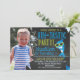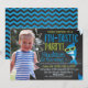 ¿Buscas una tiburón tiburón tiburón o una invitación al cumpleaños de fin de semana? Este diseño puede ser lo que estás buscando. La invitación incluye gafas de tiburón fresco, en un fondo de pizarra. La parte trasera de la invitación es un patrón de chevron azul y negro. El mismo diseño de invitación también está disponible sin fotografía. Para más diseños en este tema, por favor visite la tienda. Esta invitación de cumpleaños de este chico de tiburón aleta-tastica está lista para ser personalizada.