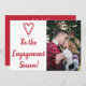 Combina tu anuncio de compromiso con una tarjeta de vacaciones esta temporada para hacer saber a tus seres queridos que ahora estás comprometido. El feliz anuncio está diseñado con un corazón de caramelo y el texto '¡Es la temporada de compromiso!' con una foto en la parte frontal. En la parte trasera, añade tus iniciales, la fecha de compromiso y un saludo especial de vacaciones.