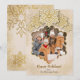 Desea a su familia y amigos unas Felices Fiestas con esta elegante y brillante tarjeta de Navidad! Comparta su foto familiar favorita en esta hermosa tarjeta de Navidad personalizada! Haga que su celebración navideña y de invierno sea brillante y resplandeciente con estos copos de nieve dorados y blancos antiguos sobre un fondo color crema con un aspecto de papel recortado a mano.