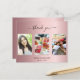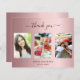 Un glamoroso cumpleaños 21 (o edad andy) Gracias tarjeta personalizada con tu propia foto. Añade 3 fotos de tu cumpleaños, tamaño vertical, una fecha, nombre y la nota de agradecimiento. Un fondo de aspecto metálico femenino rosa oscuro con un texto negro. El texto: Gracias en la parte delantera y sus nombres en la parte trasera están escritos con un elegante guión con letras a mano con guiones.