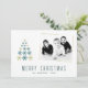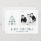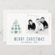 Tarjeta de vacaciones de foto de familia del árbol de Navidad de copos de nieve moderna. En la parte delantera de la postal hay un árbol de Navidad hecho de copos de nieve. Inserte una foto de su familia en la plantilla.