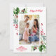 Marco único de vacaciones de invierno en acuarela con vegetación, bayas, foto de su familia, caligrafía elegante. Utilice la herramienta Personalizar para agregar su información y cambiar la foto. Más opciones en mi Colección de Fotos de Navidad.