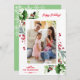 Marco único de invierno con acuarela, vegetación, bayas, foto de su familia, caligrafía elegante. Utilice la herramienta Personalizar para agregar su información y cambiar la foto. Más opciones en mi Colección de Fotos de Navidad.