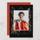 Ilustración original de bayas de Navidad y trozos de nieve sobre fondo negro con foto de retrato. Personalice la parte trasera como desee.