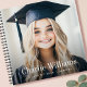 Libro de invitados de graduación con el nombre del graduado, clase y colegio en un elegante tipo de letra de serif sobre tu foto personalizado. Foto adicional en la parte de atrás.