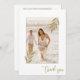 Esta tarjeta de agradecimiento de boda con diseño de hoja de oro y foto es la forma perfecta de compartir su agradecimiento con su familia y amigos. Personalice con dos de sus fotos favoritas de la boda o luna de miel y su mensaje personalizado. Contácteme si tiene alguna solicitud de personalización.