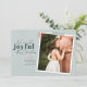 Una tarjeta moderna con un mensaje que dice "Estamos extra alegres con estos Navidades" es perfecta para anunciar el embarazo de su familia. Personaliza con tus nombres, imagen favorita y un mensaje corto. Imagen verde de color de Jessica Rockowits en Unsplash