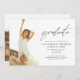 Tarjetas de Invitación de grado que tienen una foto (dos fotos) en la parte delantera y trasera, así como el nombre de la escuela, el año de graduación, la ubicación, el tiempo y los planes futuros. Las invitaciones para graduación de la secundaria o de la clase universitaria de 20XX contienen una tipografía de escritura cursiva escrita a mano moderna que son elegantes, simples y modernas para usar después de un minimalista día de logros de graduados simples.