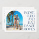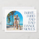 Elegante y moderna foto de arco salva las fechas de la pareja que adora la diversión y que no puede esperar a celebrar su boda en la playa. Diseño de texto azul que dice: Booze, comida y movimientos de baile malo. Personalizar con su foto en la parte delantera y los detalles de su boda en la parte posterior de la tarjeta. Se puede utilizar para cualquier playa o ubicación tropical.