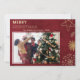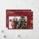 Moderna y elegante familia burdeos de oro rojo dorado 4 fotos de collage Tarjeta navideña Feliz con elegante tipografía caligráfica. Personalizar esta mínima tarjeta minimalista con sus fotos y nombre de familia.