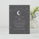 Invitación a una boda de temática estelar y luna celestial con fondo gris de carbón vegetal y texto blanco con elementos. También puedes añadir tu propia foto en la parte posterior. Personalizar el color del patrón estrella, fondo, relleno de arco y elemento lunar!