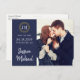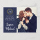Esta simple boda fotográfica de moda, salvo la postal de fecha, tiene un diseño cálido y limpio. Utiliza las herramientas de diseño para personalizar y hacerlo único tuyo con tu foto favorita! En él se exponen las primeras letras de tus nombres rodeadas de un anillo ornamental de oro falso y una base naval, adornada con un motivo sobrio y elegante.