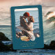 Guarda las tarjetas de cita para una pareja que ama el mar. Un simple mensaje para "guardar esta fecha" con una foto de la pareja, nombres y fecha del boda. El papel verde-azul oscuro y la foto enmarcada por conchas marinas muestran un amor por el océano. La foto es retrato (vertical) y tiene esquinas redondeadas. La tarjeta también puede tener esquinas redondeadas, o cambiarla. El texto y un marco de línea delgada son de color beige amarillo. El diseño también viene como descarga instantánea.