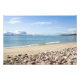 Una solitaria ola atlántica irrumpe en una playa de verano en Mulrany Strand cerca de Westport, County Mayo, en la costa oeste de Irlanda. La orilla vacía está plagada de grandes cantos rodados rodeados por el océano que roza, y las montañas azules brillan en el horizonte neblinoso.