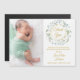 Un anuncio de nacimiento decorativo con guirnalda de laurel verde y tarjeta magnética de agradecimiento con una foto de su nuevo bebé. Personalice el mensaje de agradecimiento y agregue el nombre de su bebé y estadísticas de nacimiento. Diseñado por Thisisnotme©
