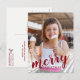 Celebre la temporada con esta tarjeta postal navideña moderna y elegante de JMR Designs. La tarjeta postal presenta tipografía script y moderna. En el reverso de la tarjeta postal puede personalizar o eliminar el texto para un mensaje manuscrito. Envíeme un correo electrónico a JMR_Designs@yahoo.com si necesita ayuda o tiene alguna solicitud especial.