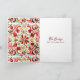 Ilustración de un pollo con un sombrero de Santa. El borde y el reverso tienen un diseño de patrón de baldosas florales de acuarela roja y verde. Personaliza con la foto de tu familia en el frente. Personaliza el texto en el interior.