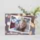Tarjetas de Navidad personalizadas. Bonita tarjeta de Navidad con destellos bokeh azules y dorados.