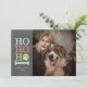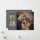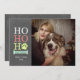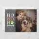 "ho ho ho" con huella de pata y hueso incorporados en el diseño sobre un fondo inspirado en pizarra. Personaliza la foto y el nombre.