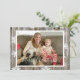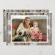 Sube tu foto familiar navideña a esta tarjeta de Navidad con fondo de madera rústica desgastada y copos de nieve blancos.