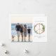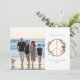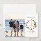 Ilustración de un signo de paz de madera decorado con diseños botánicos navideños como bayas de acebo, siempreviva y muérdago. Personaliza el nombre, año y foto.