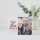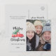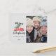 Esta tarjeta postal de foto de Navidad de camioneta roja y árbol hace el regalo perfecto con estilo moderno y vintage para las fiestas. El diseño presenta una clásica camioneta pickup roja antigua que lleva un árbol de Navidad con las palabras "Feliz Navidad" en una fuente moderna manuscrita. Agrega tu foto de Navidad y personaliza la tarjeta postal con el nombre de tu familia, año, saludo personal y nombres.