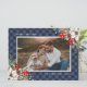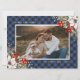 Celebre las fiestas de invierno con esta tarjeta de Navidad con una pintura de acuarela de flor de Pascua, acebo y bayas rojas sobre un fondo de cuadros azul búfalo. Personalice fácilmente esta tarjeta de Navidad con su foto y texto.