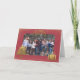 La foto de tu fiesta favorita y tres líneas de texto personalizado destacan esta tarjeta de Navidad roja y dorada.