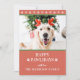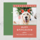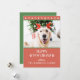 Tarjeta de vacaciones moderna con tu foto favorita de tu bebé peludo, "Feliz Pawlidays", nombre de la familia en letra serif moderna superpuesta en un fondo rojo festivo.