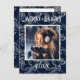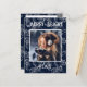 Tipografía Merry & Bright. Fondo azul marino con hermoso diseño de brocado con tu foto favorita en el centro. Personaliza con tu mensaje y nombre en el reverso. La tarjeta de saludo de vacaciones perfecta.