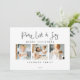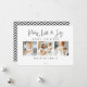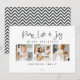 El diseño en la parte delantera consiste en la tipografía cursiva juguetona de "Paz, Amor y Alegría Feliz Navidad". Agregue una foto personalizada de su familia y agregue el nombre de la familia y el año. La parte trasera tiene un patrón de chevron. Este diseño es moderno, chic, juguetón y divertido.