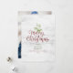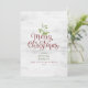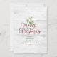 Elegante tarjeta de Navidad con tipografía de Merry Christmas y muérdago en acuarela que cuelga sobre elegante tipografía. Personaliza el mensaje, el nombre de la familia y la fecha en la parte delantera y añade una foto especial en el reverso o déjalo en blanco. Diseñado por Thisisnotme©