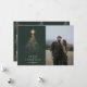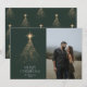 Tarjeta de Navidad con tipografía moderna verde y brillo de purpurina dorada 1 foto